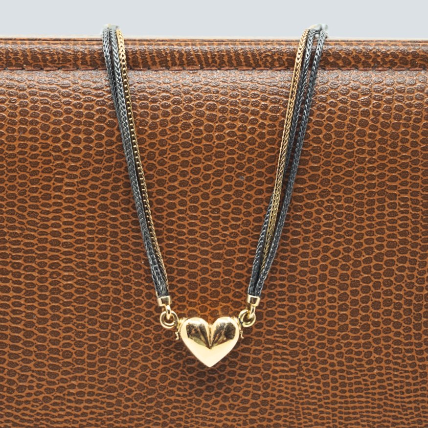 Per Borup; Heart clasp in 14kt gold, including chain of oxidized silver and 14k gold. The heart can be turned both ways and has one side with a smooth surface and one with a rough surface.