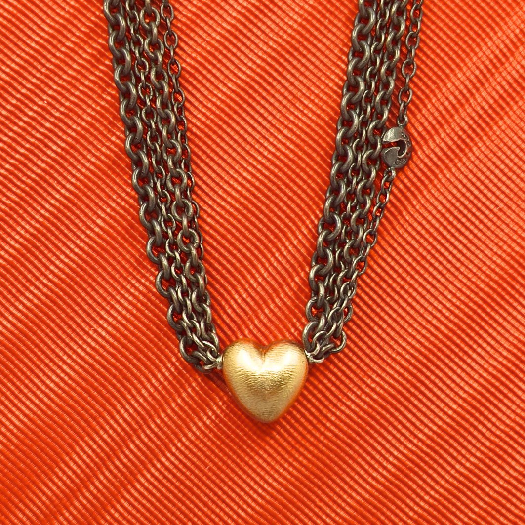Ole Lynggaard, Heart clasp of 14k gold, with oxidized silver chain