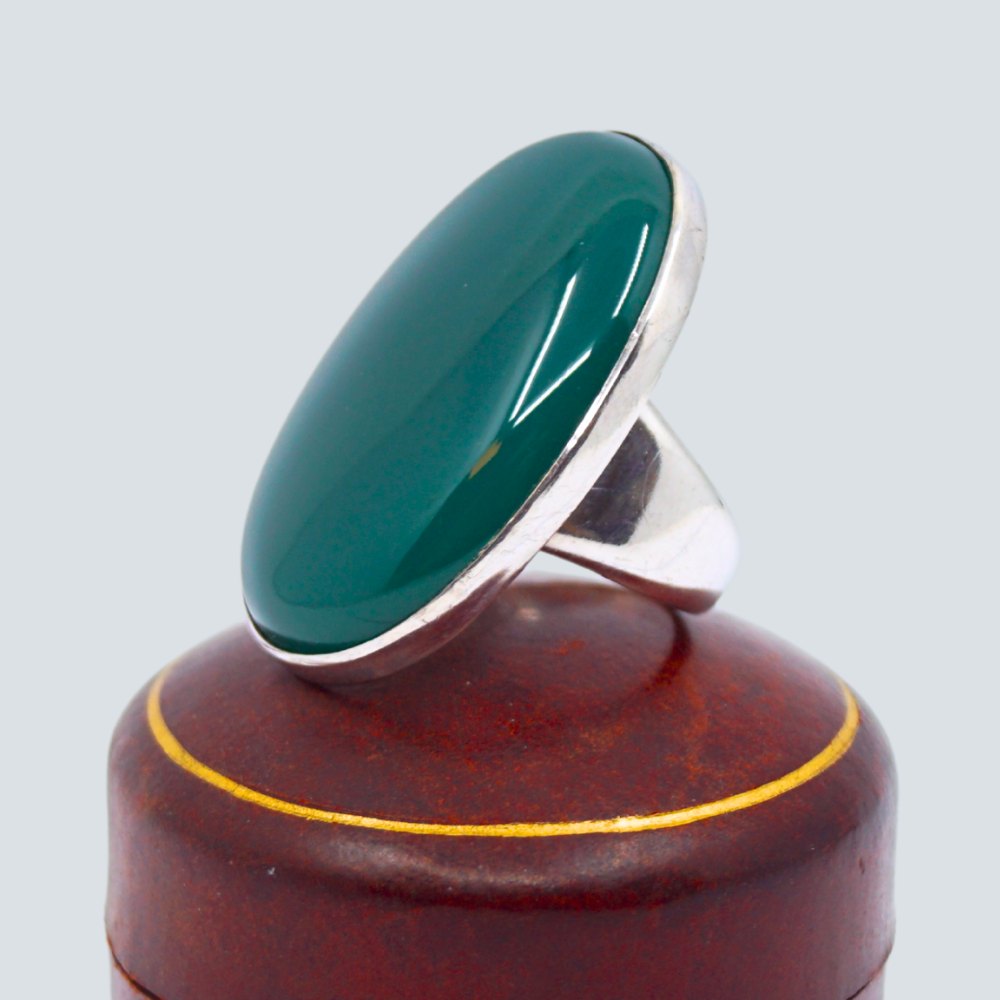 Georg Jensen; Ring i sterlingsølv med grøn agat, nr. 90B