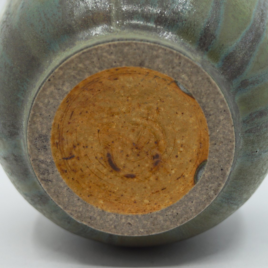 Arne Bang; Small stoneware vase, decorated with a flower branch. In green and brownish glaze. In good condition.
