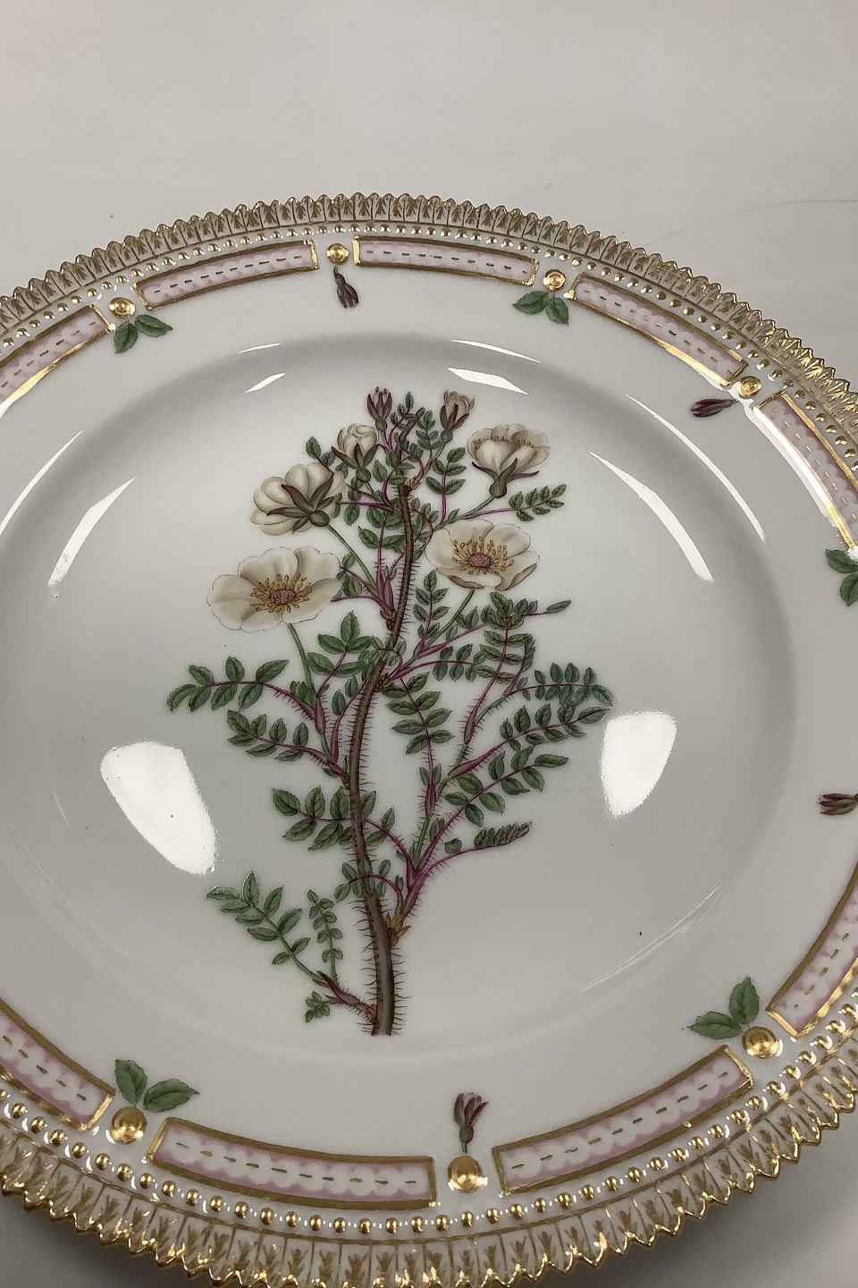 Royal Copenhagen Flora Danica Dinner Plate No. 624 (20/3549) Measures Diam 26 cm. (10.23 inch) 1. Quality. Latin Name: Rosa impinelleafolia L.