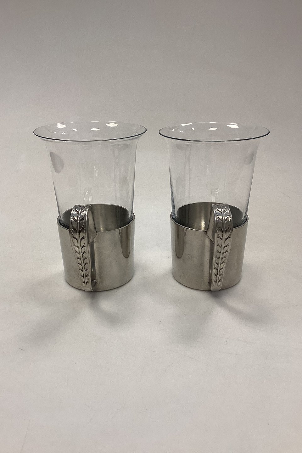 Just Andersen/Holmegaard A pair of Pewter Mugs with Glass No. 2504. Measures 13 cm / 5.11 in.