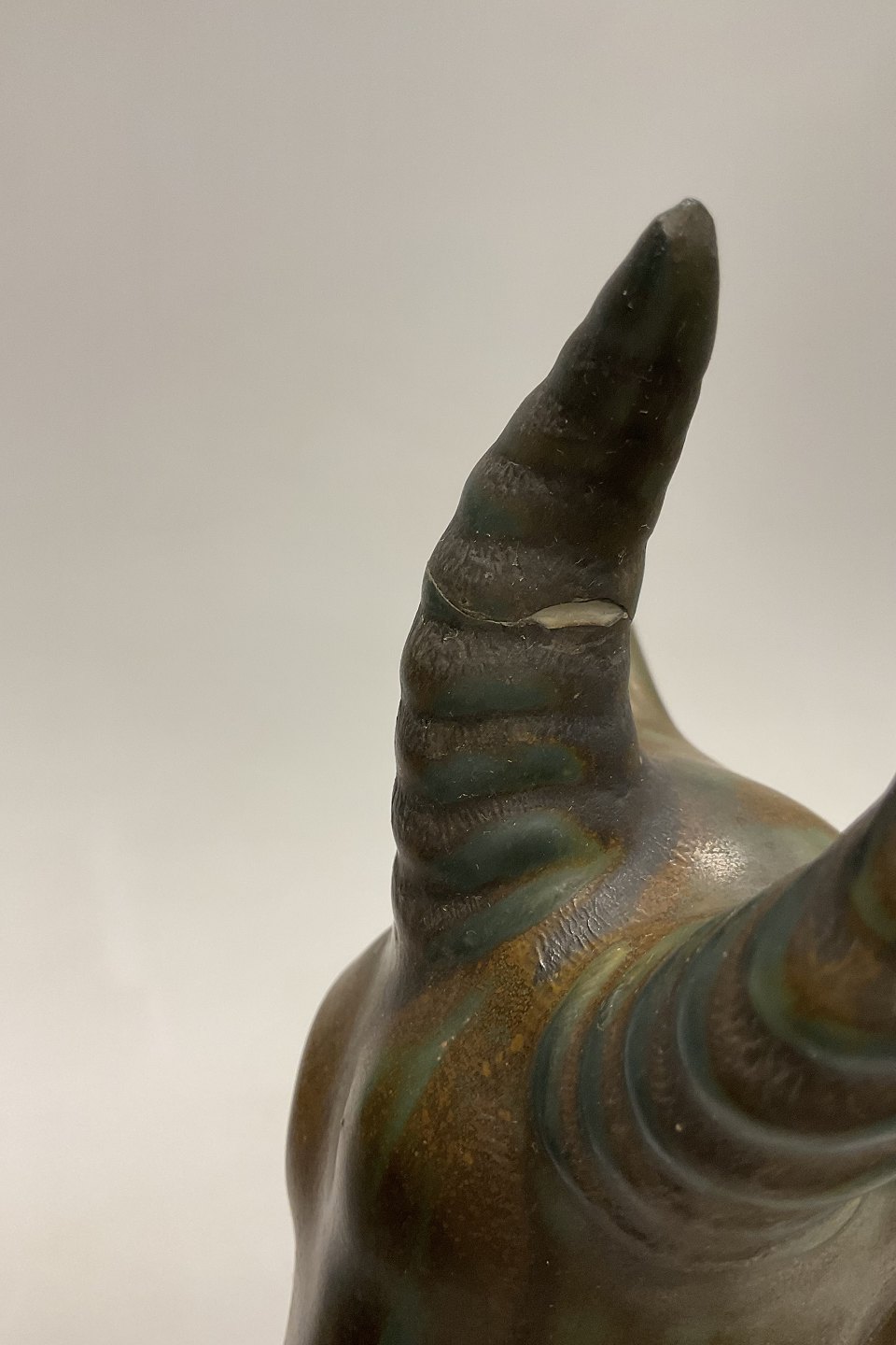 Has a repair on one of the horns. A few burn marks here and there, so pictures.