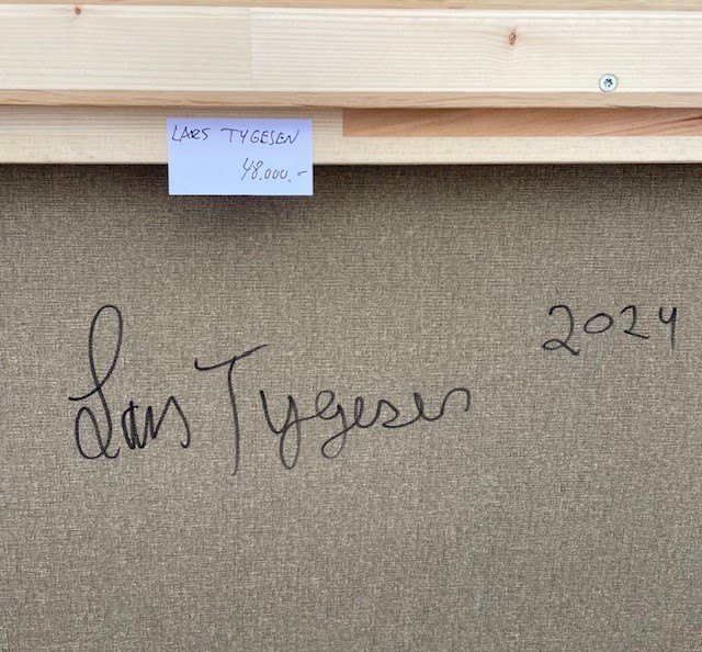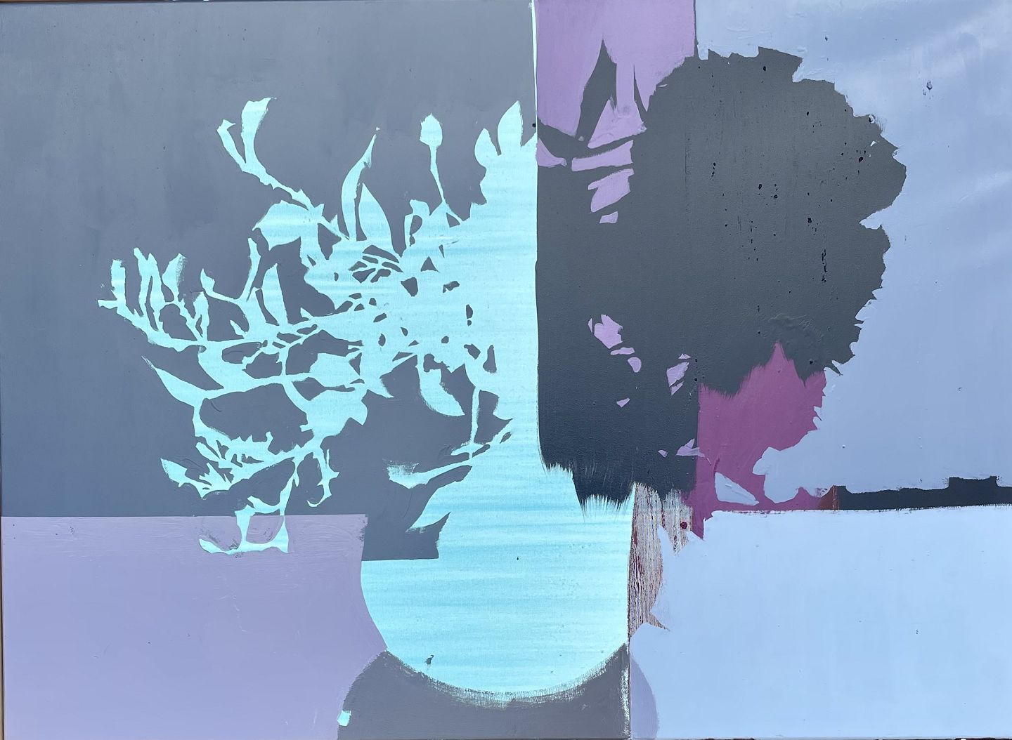 "Composition" Acrylic painting on canvas" The painting is mounted in a wide solid oak frame.