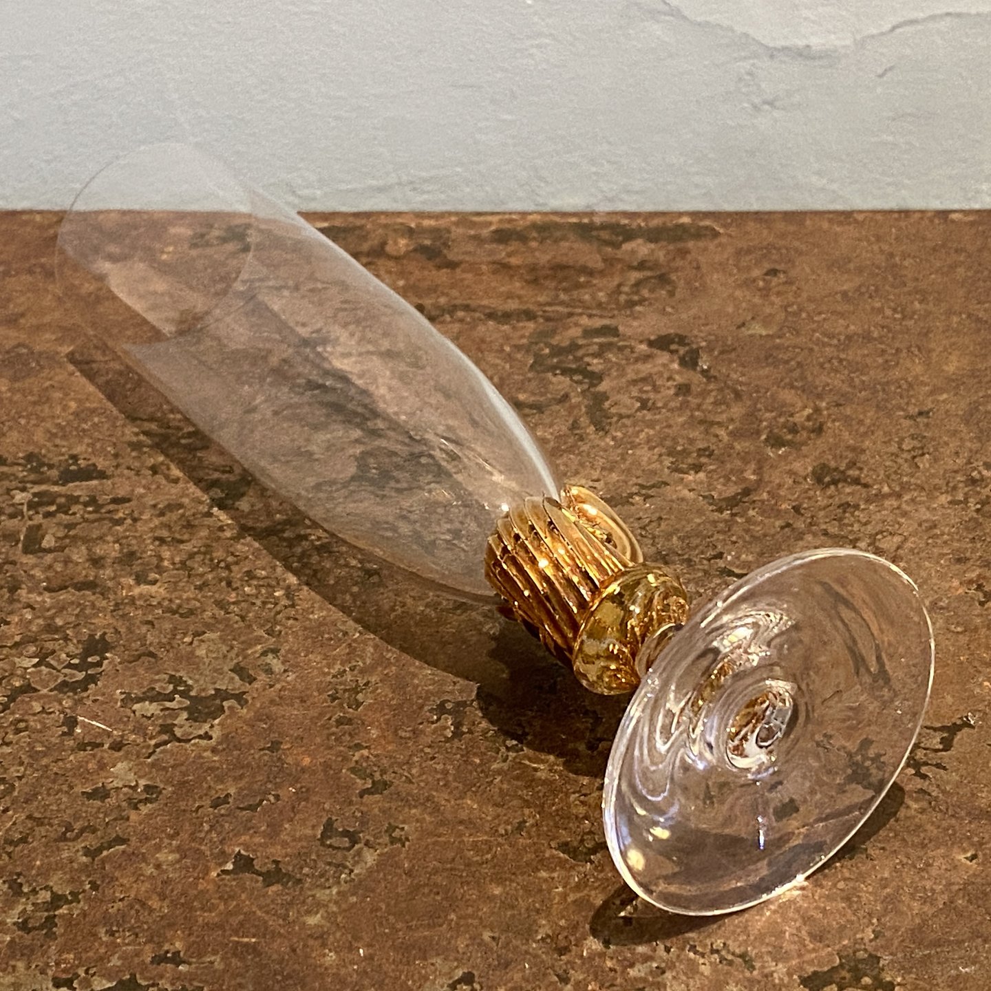 Itemnumber: 630162Darryle Hinz Champagne glass Neptune. Made at Holmegaard in 1999-2000. Designed by Darryle Hinz. Made of clear glass with a gilded decorative stem in the shape of a conch. The glasses have a slim shape and are suitable for serving champagne and sparkling wines. The design combines functionality with aesthetics. Dimensions: H. 20-20.5 cm PRICE EACH 700 kr. NOW 550 kr