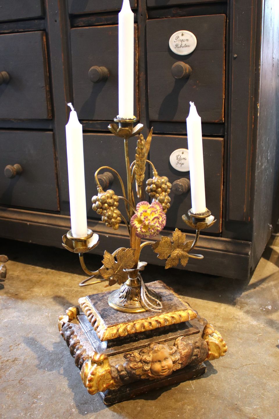 Antik 1800 tals fransk bord piedestal i udskåret træ med engle motiv.