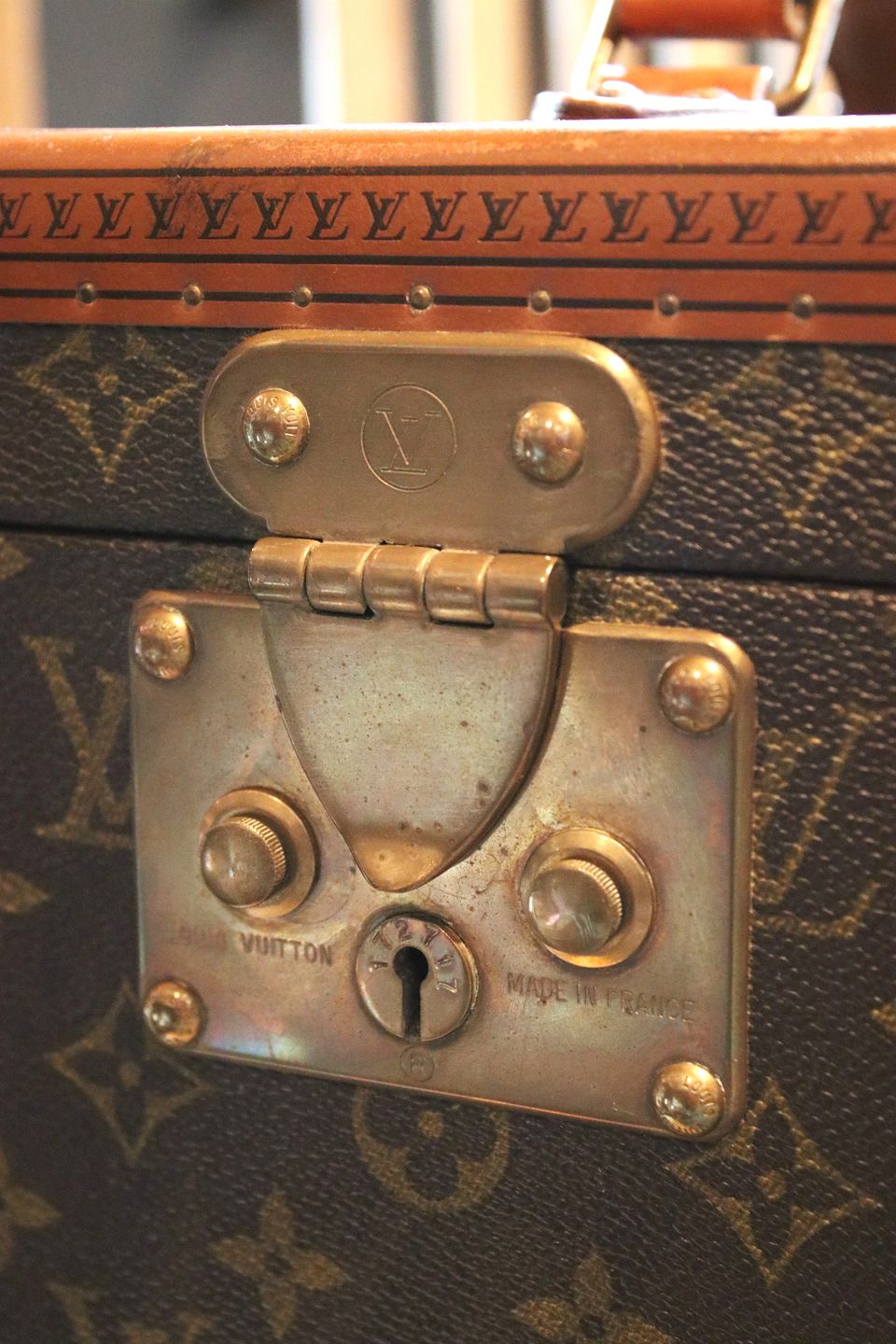 Original Louis Vuitton vintage beauty case (beauty box) in brown monogram canvas with leather edges and handles, and edge fittings in brass.