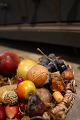 The fruit basket has a really nice old patina and there are some cracks in some of the fruit. H: 16cm. / 27x21cm.