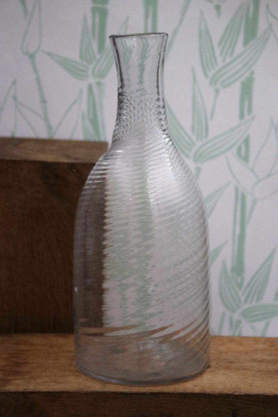 Antique, Swedish carafe in twisted mouth-blown glass. H: 27cm. Dia.: 11cm. Item number: Svensk snoet glas karaffel 1