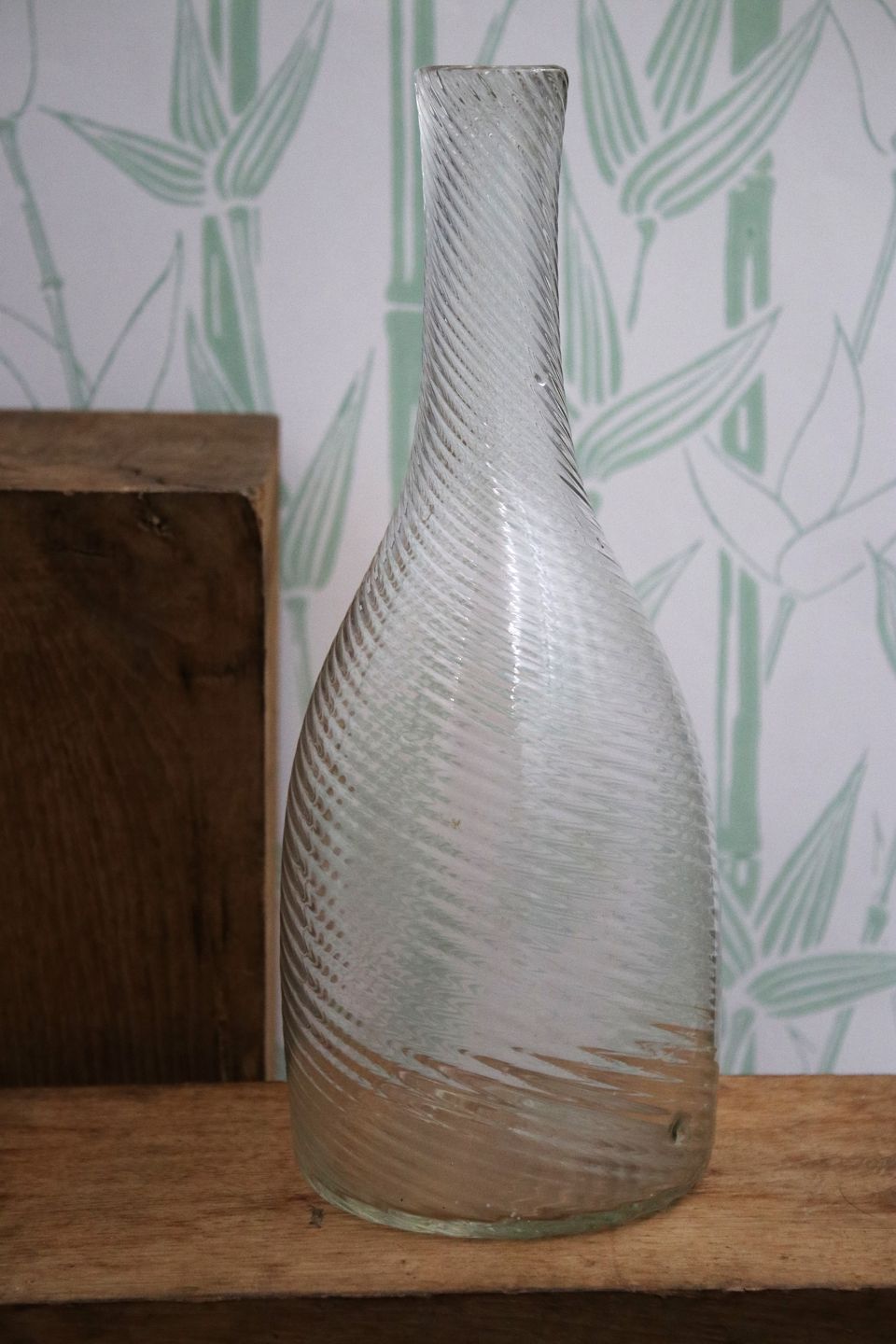 Antique, Swedish carafe in twisted mouth-blown glass.
