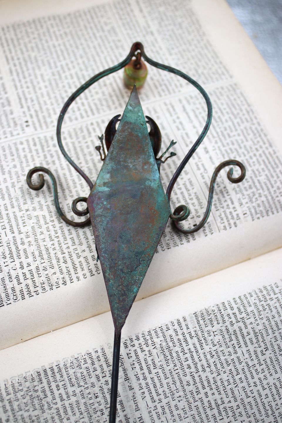 Unique flower stick in copper with glass bead and insect made by jewelry artist Torben Hardenberg. Height: 31cm. Item number: Torben Hardenberg 1