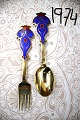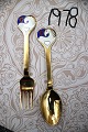 A. Michelsen's Christmas spoons & forks from the 70s. in gilded silver with enamel Christmas motifs.