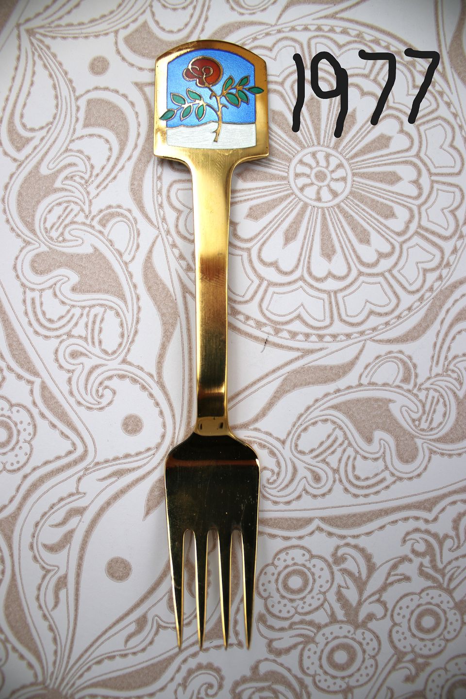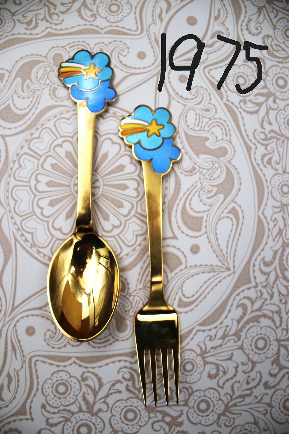 1973: Spoon - Fork, 1974: Spoon - Fork: PRICE: 600 kr. per piece. , 1975: Spoon - Fork, 1976: Spoon - Fork, 1977: Fork,