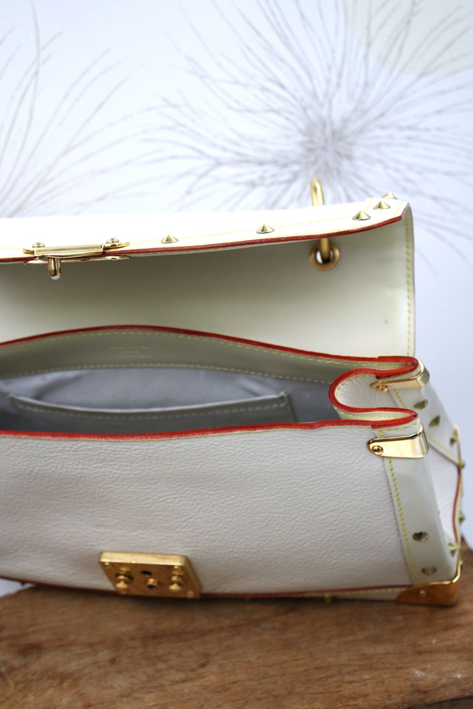 Louis Vuitton vintage bag, Suhali Le Talentueux from 2006 in white leather with gold rivets and corner reinforcement.