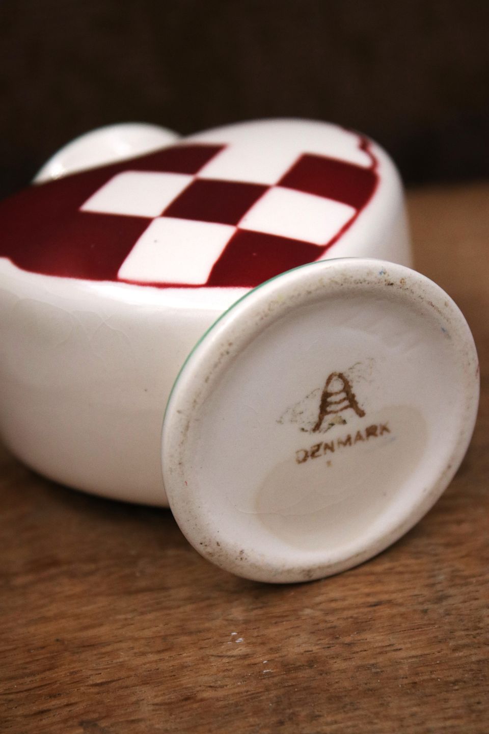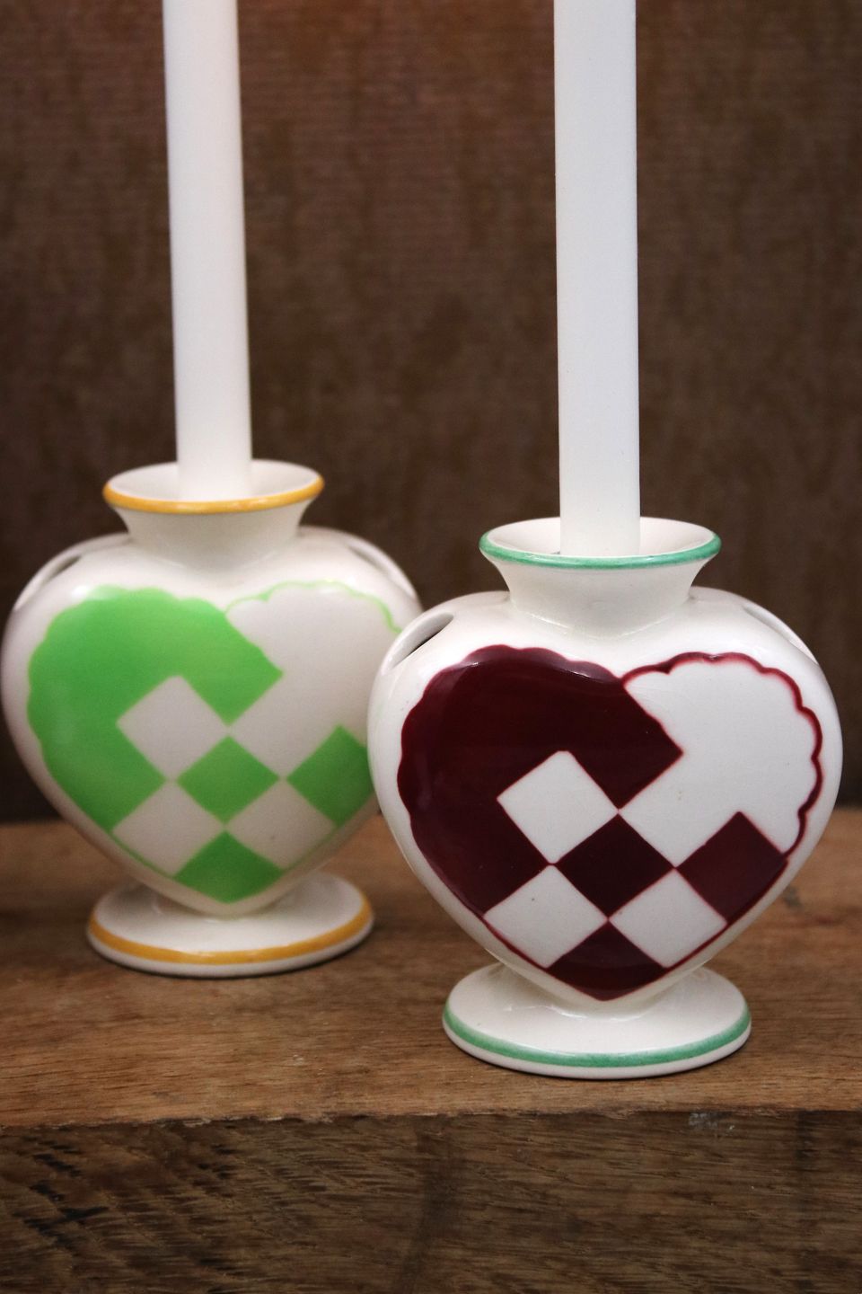 Aluminia Christmas hearts in earthenware with space for a small Christmas candle. Height: 7.5cm. in red.
