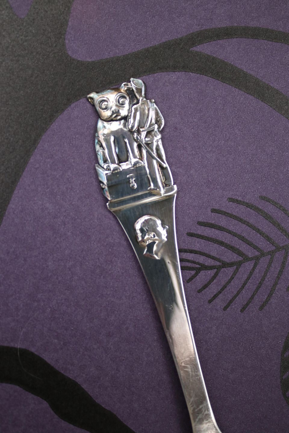 Barnegaffel i sølv (stemplet) med børnemotiver