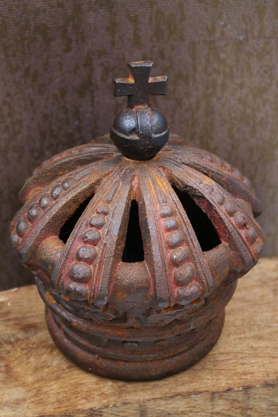 Decorative, old "King's Crown" in cast iron with a really nice patina...