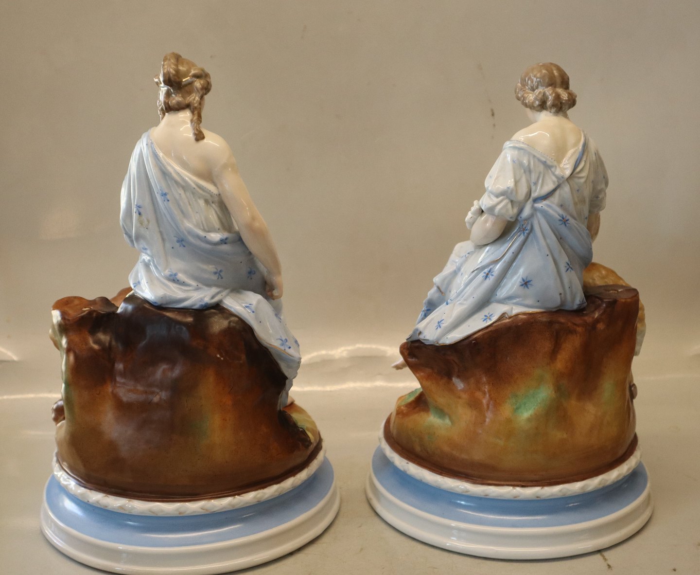 2 Antique European figurines 29 x 18.5 cm Woman with dog and Woman with kid goat
