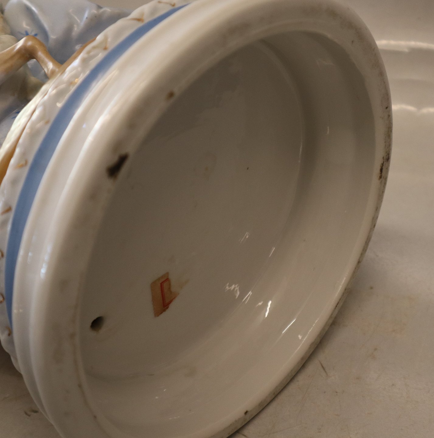 Description: 2 Antique European figurines 29 x 18.5 cm Woman with dog and Woman with kid Unmarked but in Meissen style from Germany, Bohemia, Austria or Italy KPM ? In near mint condition