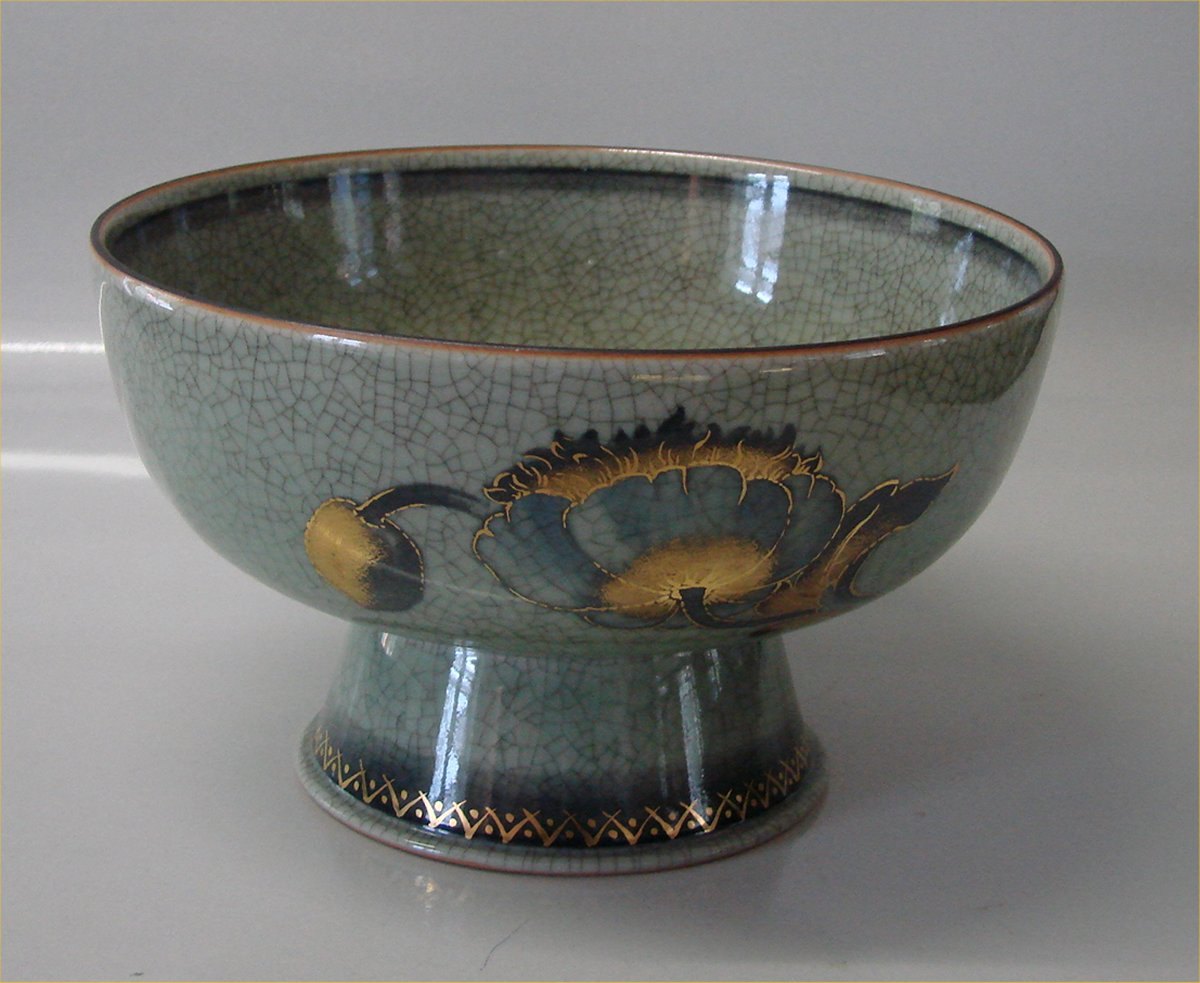 Royal Copenhagen Art Pottery 7-9 RC Bowl with flower 12 x 20 cm. Signed OJ Oluf Jensen 1931 (Crackle)