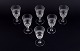 A set of six mouth-blown French white wine glasses in crystal glass. Faceted cut.