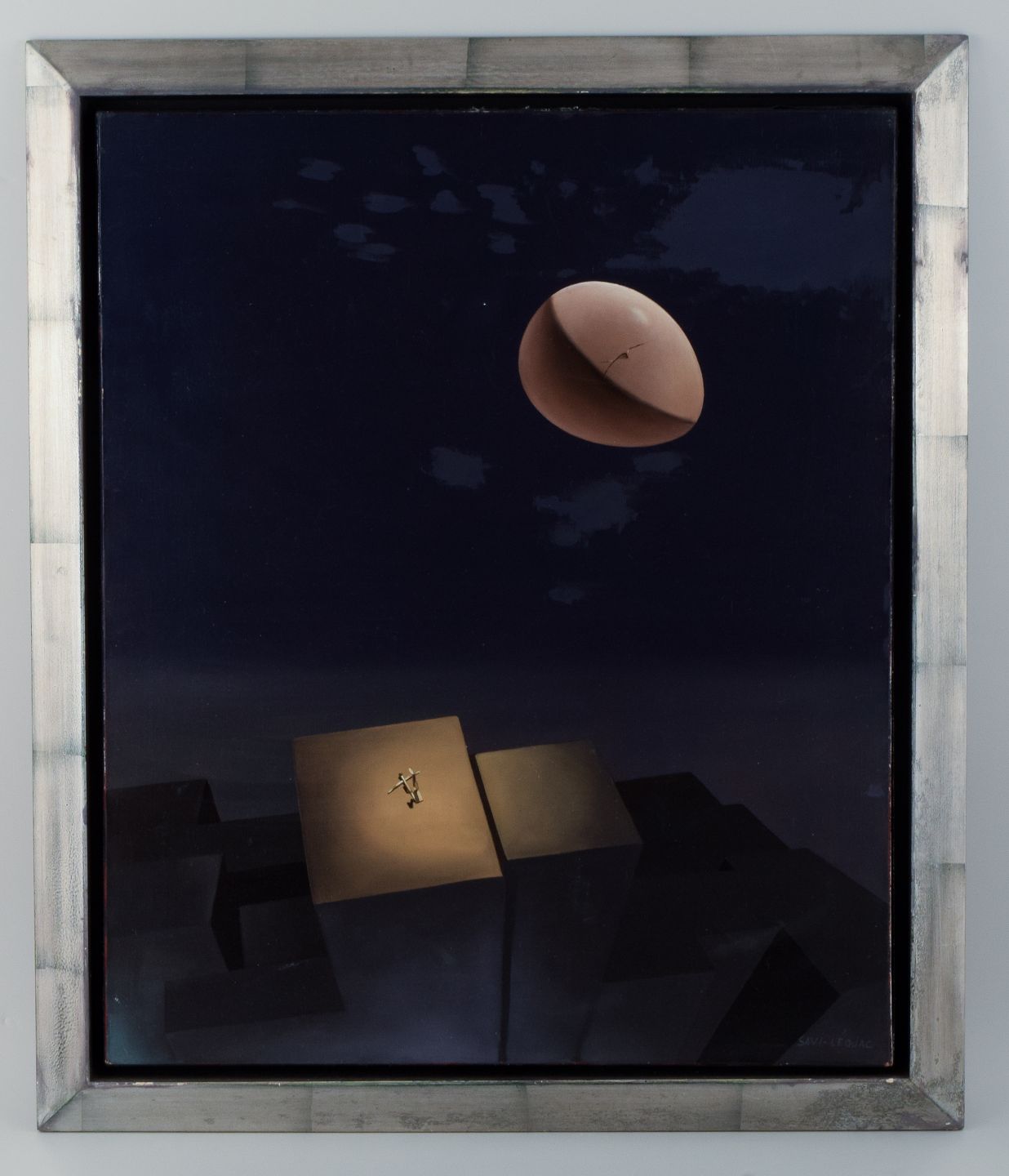 Jean Savi-Léojac (1927-1989), fransk kunstner, surrealistisk landskab. Olie på lærred. Ca. 1970'erne. Signeret. I flot stand. Lysmål 54,5 x 63,5 cm. / Totalmål: 64 x 75 cm.