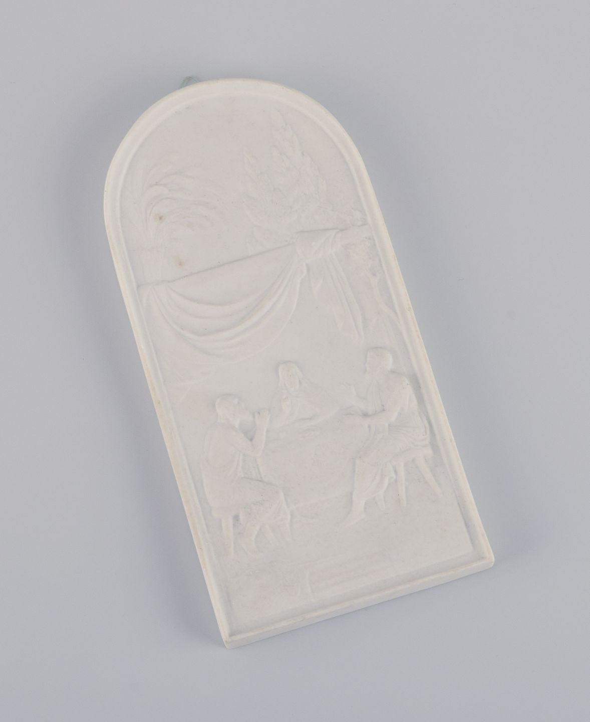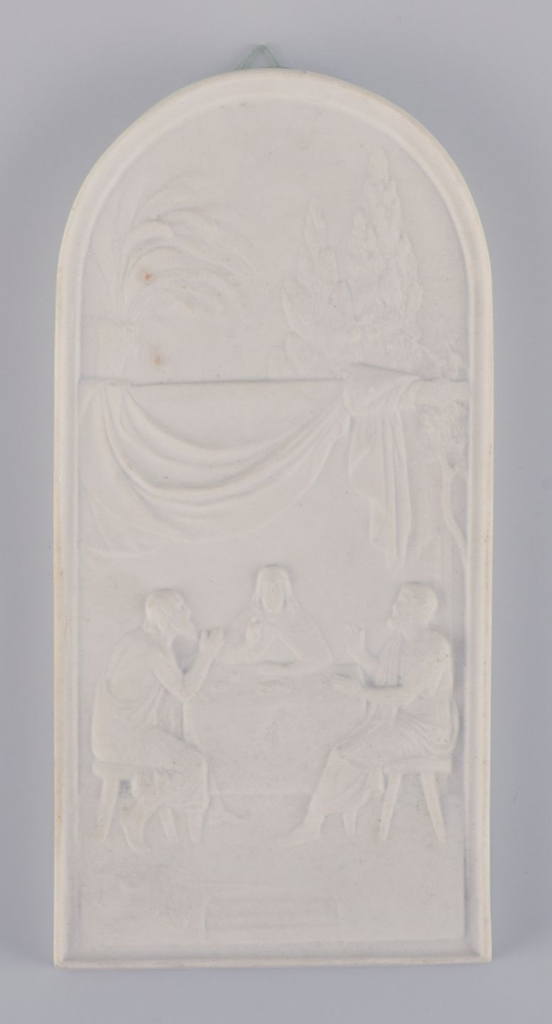 Bertel Thorvaldsen for Royal Copenhagen. Sjældent Relief i biscuit. Kristus i Emaus. Ca. 1880. Stemplet. Første sortering. I perfekt stand. Mål: B 9,0 cm. x H 18,0 cm.