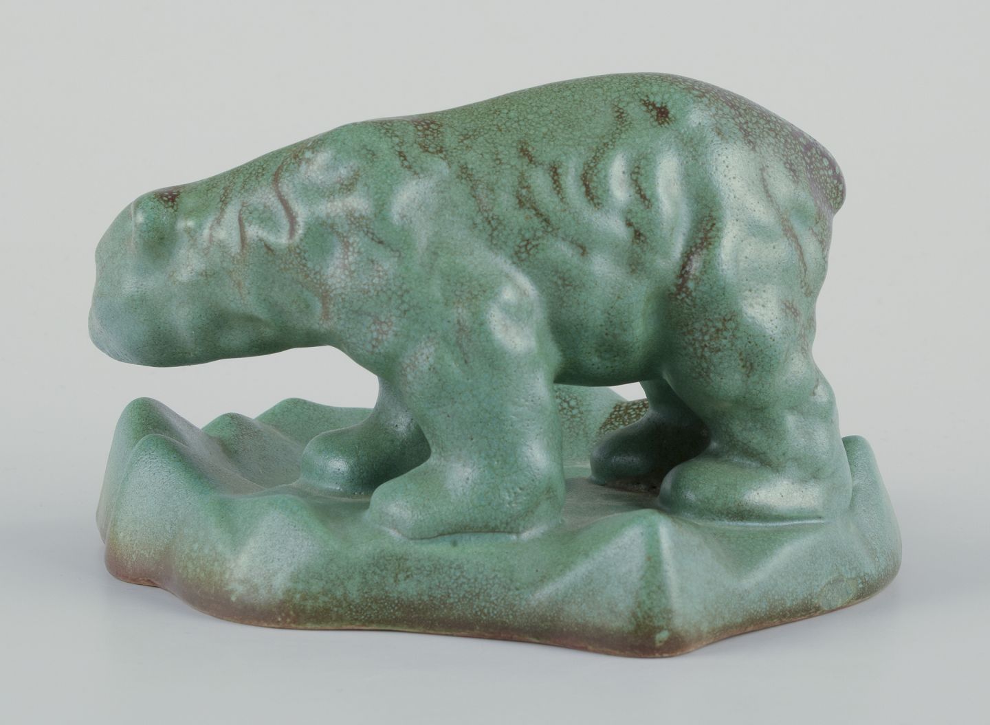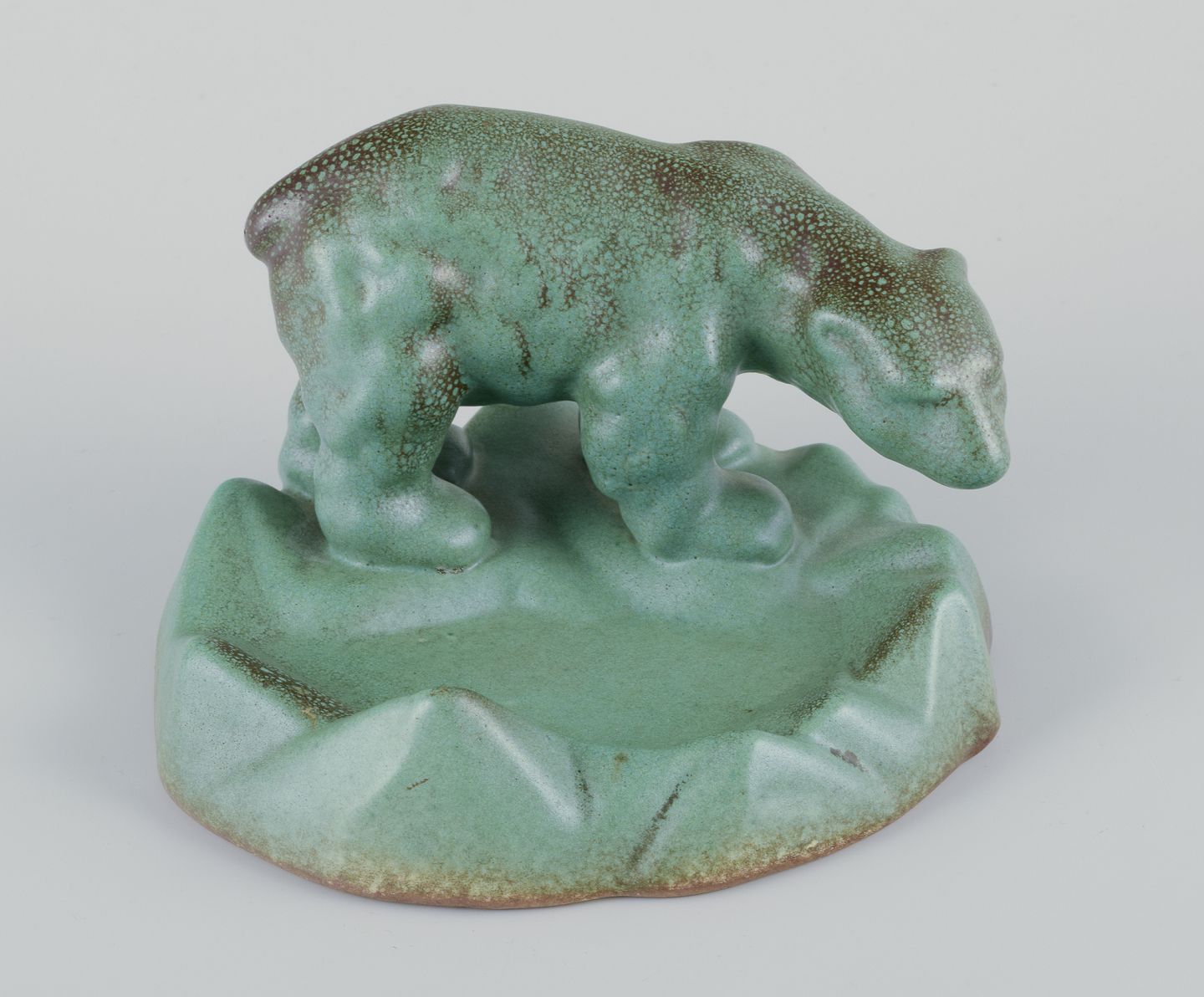 Michael Andersen (1859-1931), Bornholm. Fad med gående isbjørn. Glasur i brune og grønne nuancer. Model: 4055 Midt 1900-tallet. Stemplet. Perfekt stand. Mål: B 14,0 cm. x H 8,5 cm.