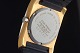 Rectangular wristwatch with a two-tone case in gilt and brushed titanium, minimalist dial in grey and gold, and original integrated bracelet.