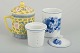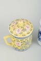 Two lidded tea cups with strainers, c. 1970s/80s.