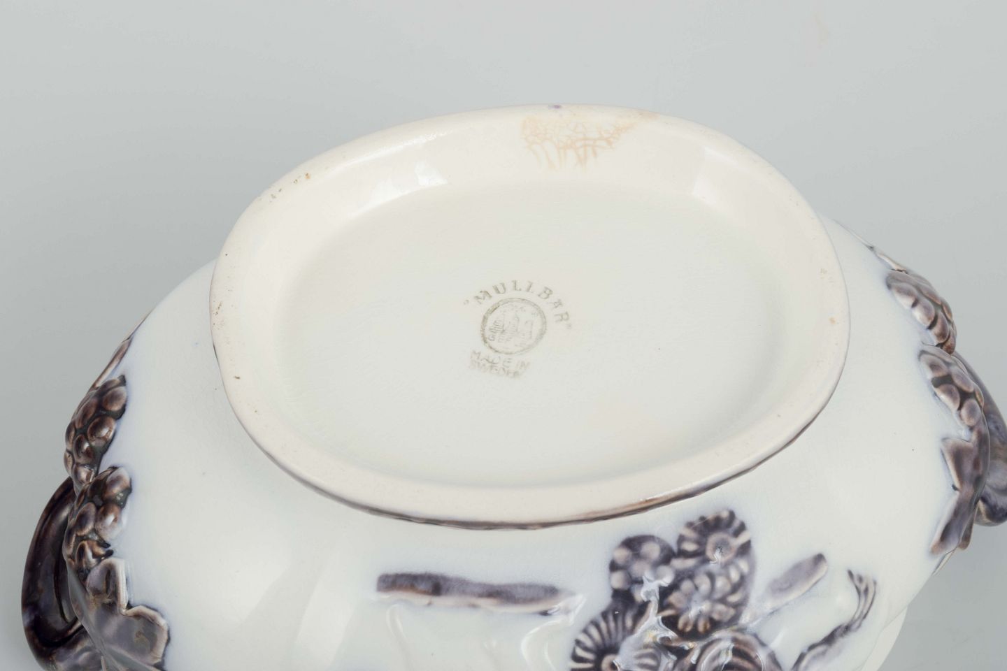 Gefle Porcelainsfabrik was founded in 1910 in Gävle, but faience production in the region dates back to the 19th century. Tureens and dishes with transfer-printed and relief vine decorations were popular household wares and produced in large quantities for both domestic use and export. The “Mullbär” pattern is a typical example of this late 19th-century production.