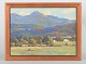 An atmospheric and colorful landscape painting, executed around the 1920s, depicting the prominent Pico and Killington mountains in Vermont. The work is characterized by Walker’s impressionistic brushwork and his sensitivity to light, color, and atmosphere. Soft blues and greens in the mountains contrast with the warmer tones of the valley and the treetops in the foreground.