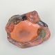 Decorative bowl shaped as a leaf with a snail resting on the rim. Glazed in shades of green, brown, and orange with a naturalistic surface texture. A classic nature-inspired work from Ipsens Enke, 1920s.