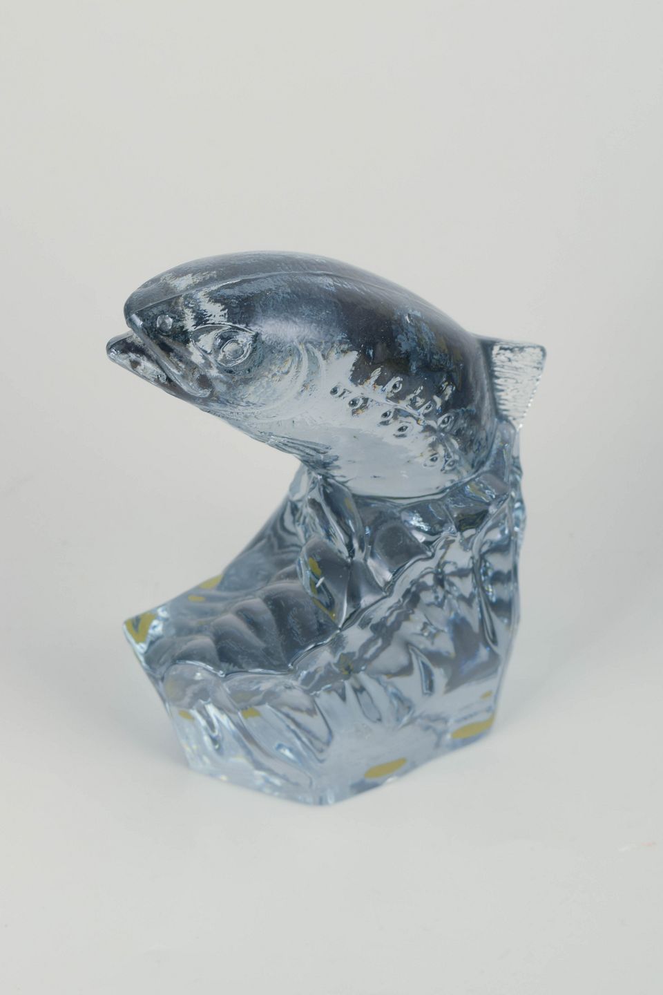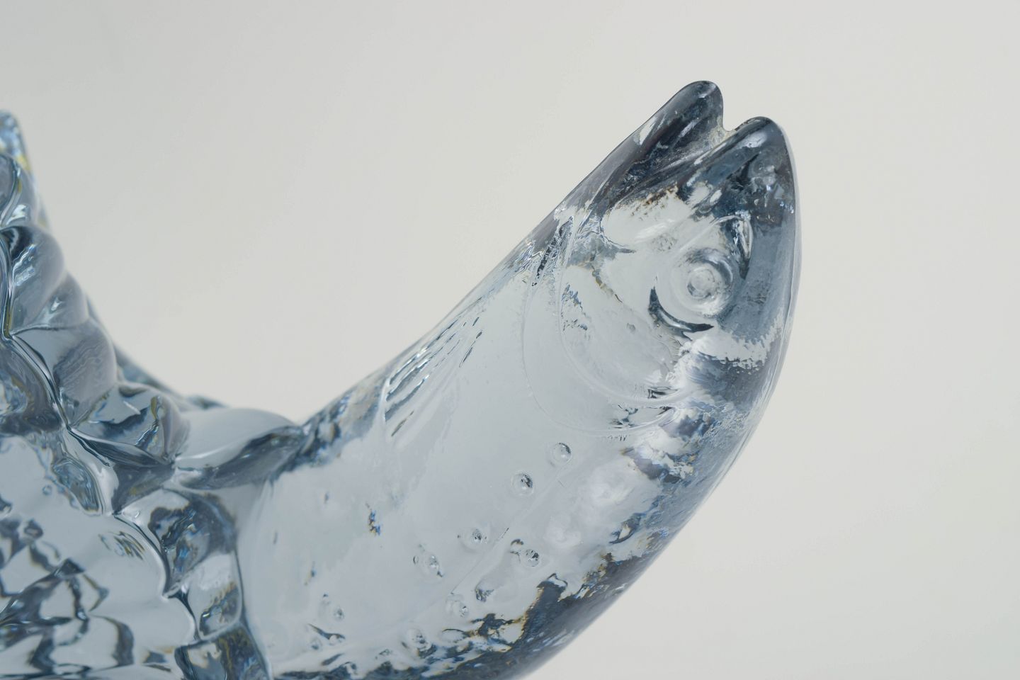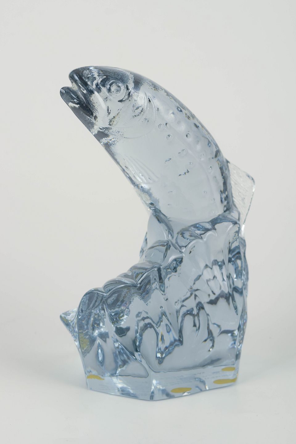 Glass sculpture of a salmon in clear art glass, 1970s.