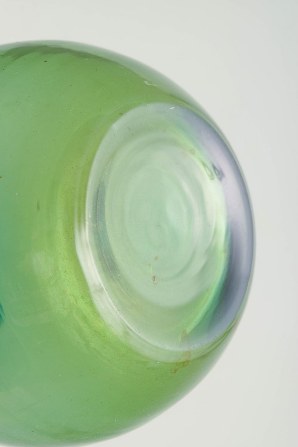 Mouth-blown Scandinavian studio glass with a graduated colour transition from blue to green. Large sculptural double-baluster form with slender neck.