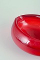 Organic freeform hand-blown bowl in deep ruby red sommerso glass with softly folded rim and luminous inner depth — a classic example of Murano studio glass.