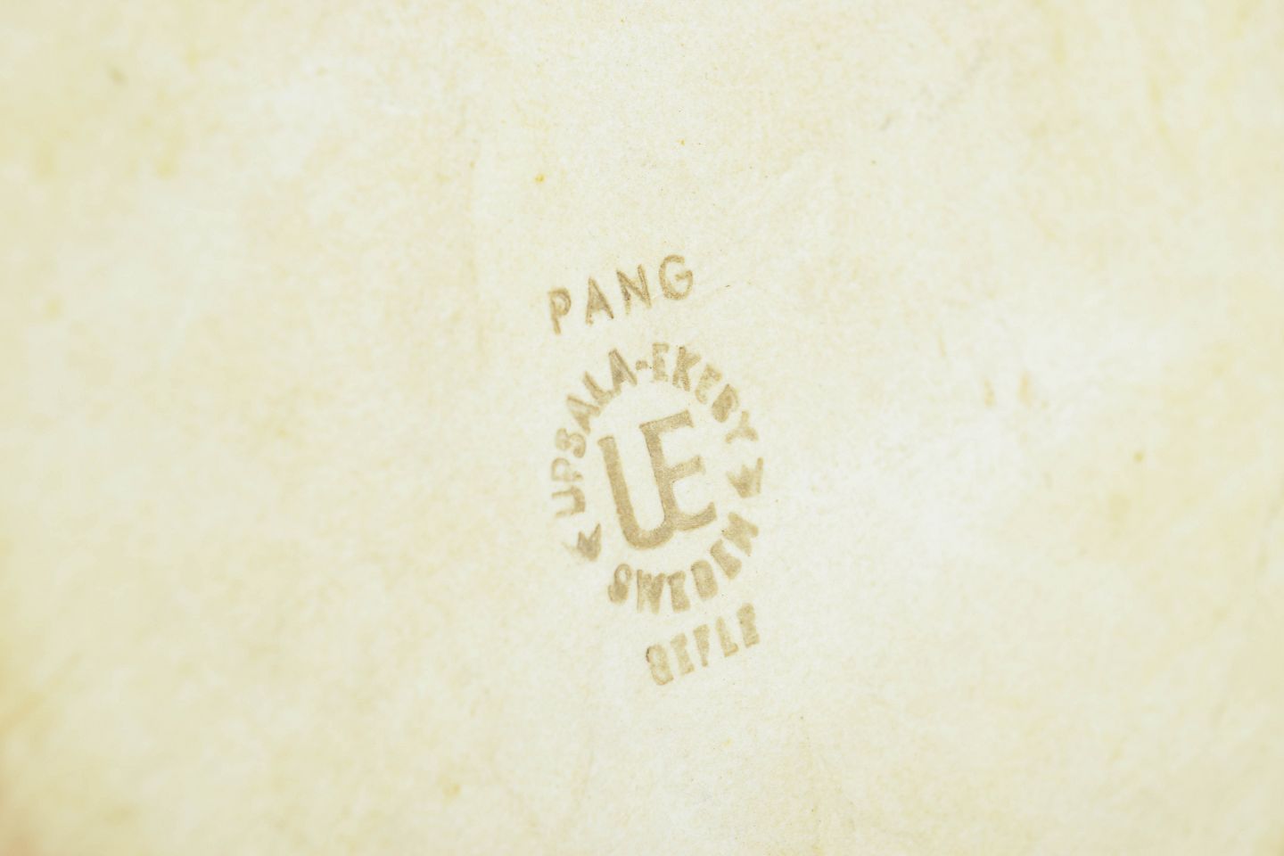 Upsala-Ekeby was one of Sweden’s leading ceramic manufacturers from the early 1900s, particularly renowned for its artistic and decorative faience during the mid-century era. The company acquired Gefle in the 1930s, and from the 1950s to 70s became a hub for modern Scandinavian design with artists such as Mari Simmulson, Ingrid Atterberg and Hjördis Oldfors. The “Pang” series is a fine example of the vibrant and playful aesthetic of this period.