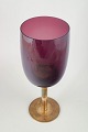 Rare and sculptural candleholder in deep violet mouth-blown glass mounted on a solid brass base. A statement piece with Jakobsson’s signature sensitivity to light, atmosphere and materiality.