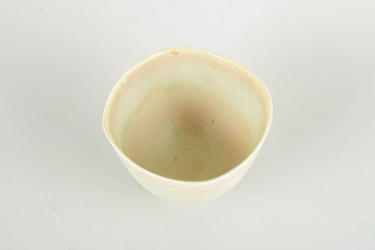 Hand-thrown small stoneware bowl with an elegant rounded form and a classic Friberg tin glaze in soft, subtle tonal variation.