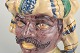 Handmade terracotta vase shaped as a male head with turban, hand-painted in vivid colours – brown, yellow, green and blue. A classic example of the Sicilian maiolica tradition from Caltagirone.