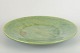 Handmade stoneware dish with vivid green glaze featuring yellow nuances and a small firing mark. Typical of the Biot studio tradition in southern France, known for rustic forms and natural glaze effects.