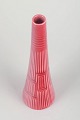 Rare conical ceramic vase in pink glaze with geometric relief pattern and vertical ridges. Marked “Lidabruk Rörstrand Kairo” to the base.