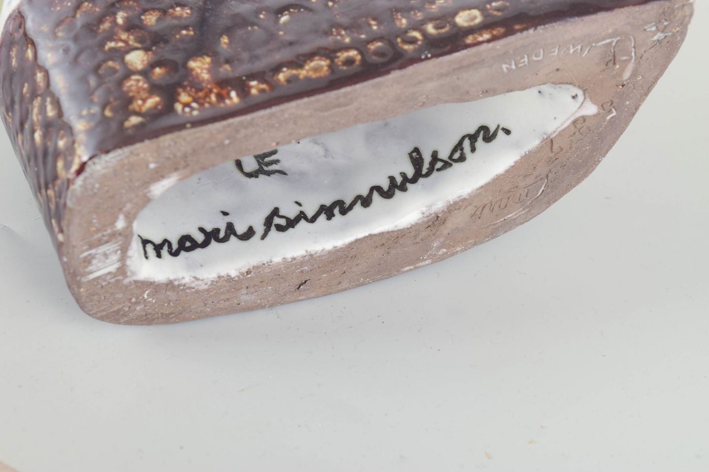 Mari Simmulson (1911–2000) was one of Upsala Ekeby’s most important designers during the 1950s and 60s. Her works combine Scandinavian modernism with warm colours and humanistic motifs, often depicting women and animals with distinctive graphic decoration.