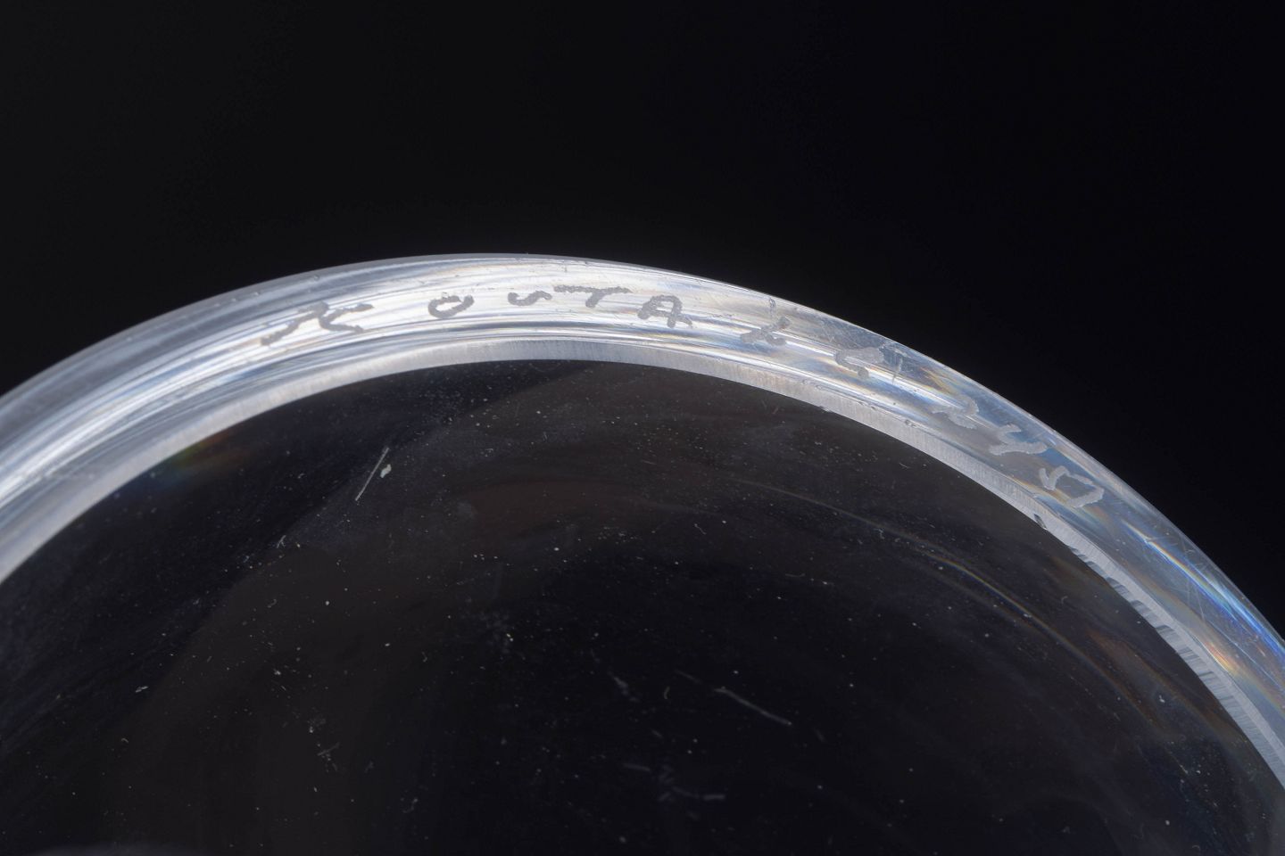 Founded in 1742, Kosta is one of Sweden’s most historic glassworks. Throughout the 20th century, Kosta developed a variety of decorative techniques—such as embedded strokes and patterning—that added depth and movement to the glass. Pieces like this model 52451 exemplify the workshop’s blend of technical mastery and contemporary design sensibility.