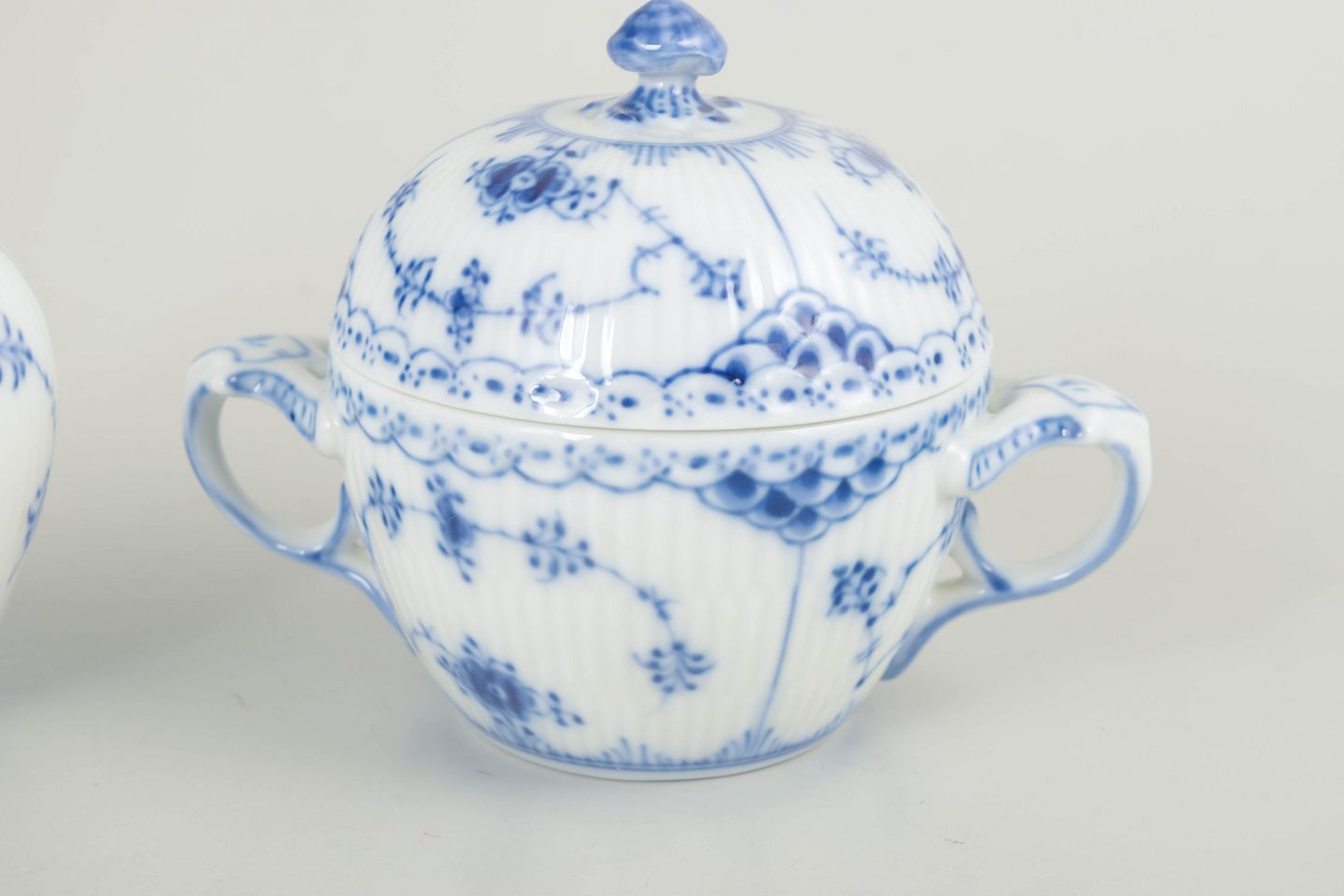 Introduced in 1885, Blue Fluted Half Lace represents a more decorative evolution of the original Blue Fluted Plain pattern. The combination of fluting, pierced lace border, and hand-painted decoration has made it one of Royal Copenhagen’s most enduring services. Continued production in the late 20th century maintained the same high standards of craftsmanship, making this set suitable for both everyday use and as an addition to earlier services.