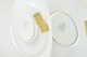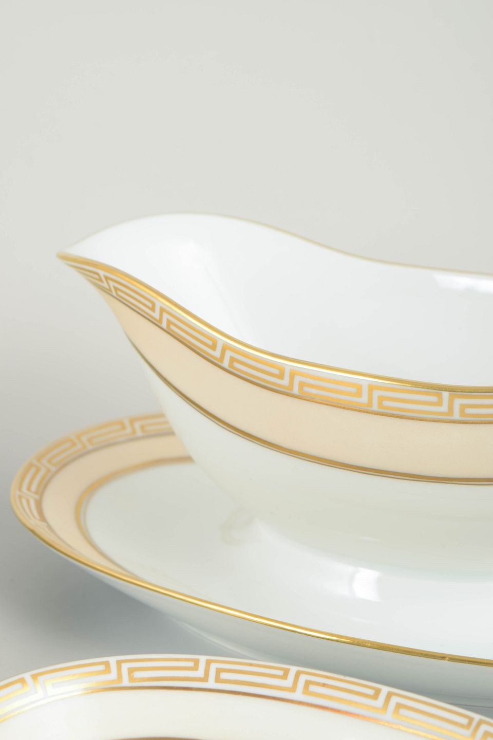 Set in white-glazed porcelain with a gilded rim and geometric Art Deco border; models 317 and 316.