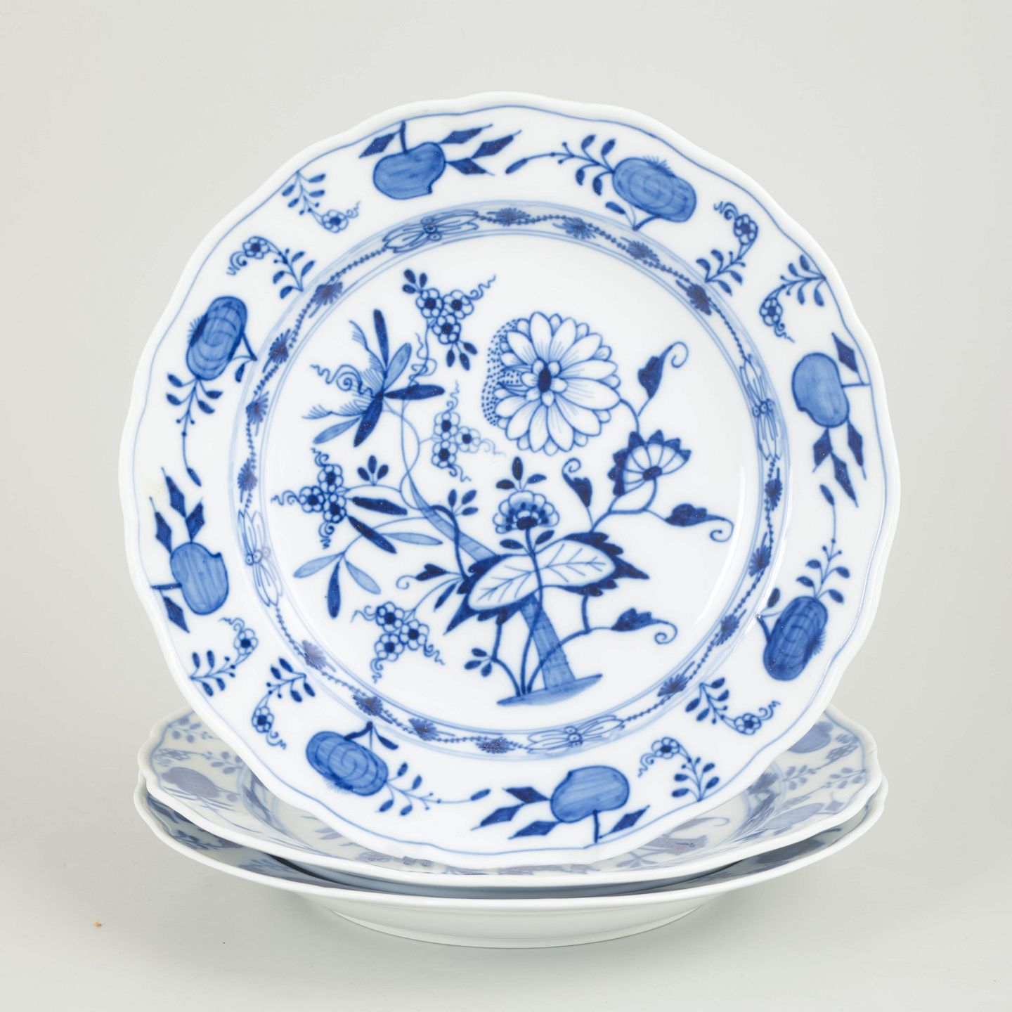 Meissen, Blue Onion dinner plates, set of 3.