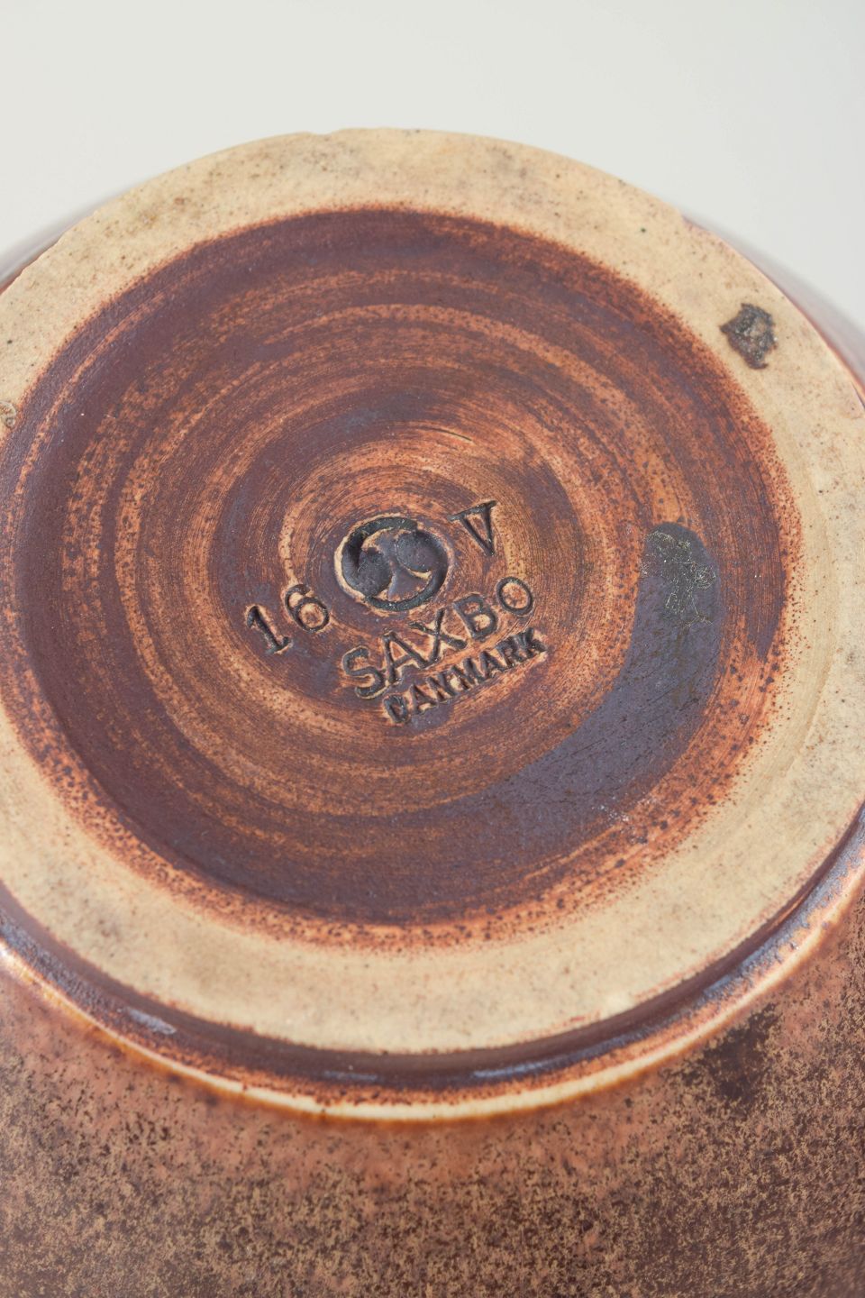 Saxbo Stoneware was founded in 1930 in Herlev, Denmark, and developed into one of the most significant Danish studio pottery workshops. The workshop became particularly renowned for its rich, deep glazes and simple, well-proportioned forms. Production was craft-based and carried out in smaller series, making the pieces highly sought after by collectors today.