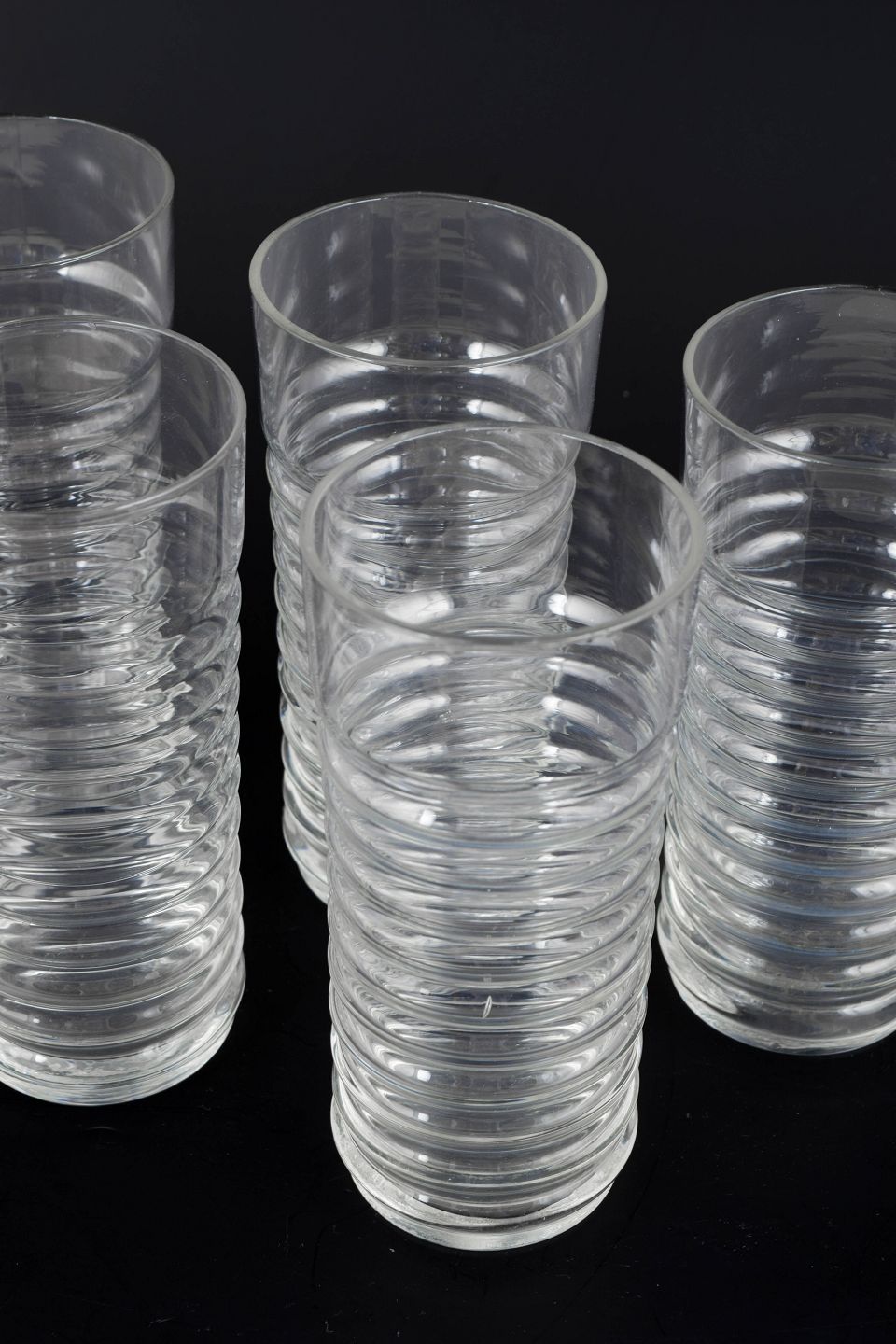 Clear glass from the Perpetum Mobile series with a distinctive ribbed structure and cylindrical form.