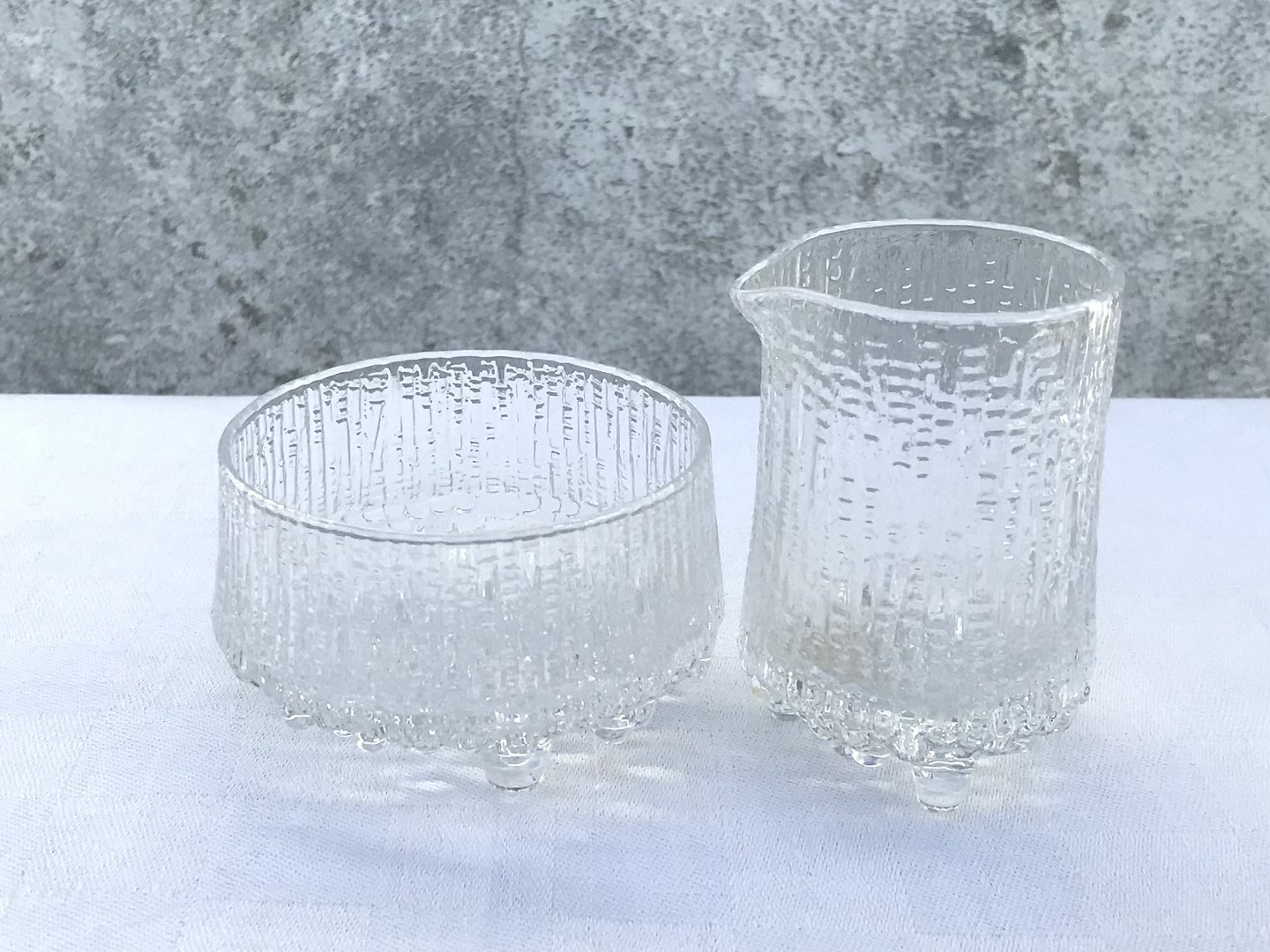 Iittala, Ultima thule, Sugar / cream set, bowl 8cm in diameter, 5,2 cm high, Jug 8cm high, 5cm in. Diameter, Design Tapio Wirkkala * Nice condition *